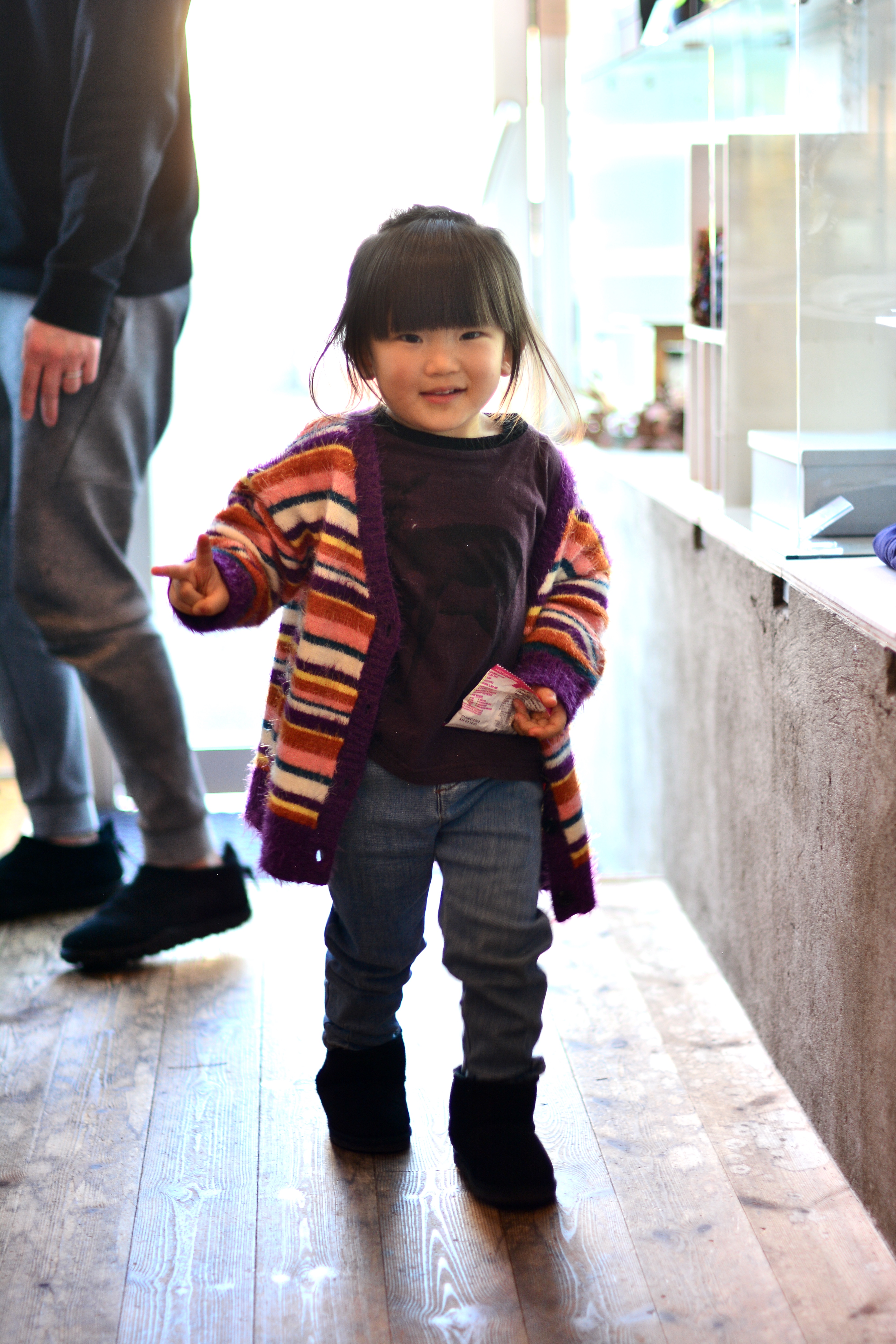 真っピンクのパンツが似合うお父さん、